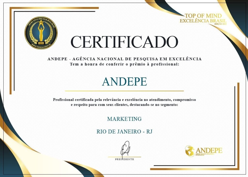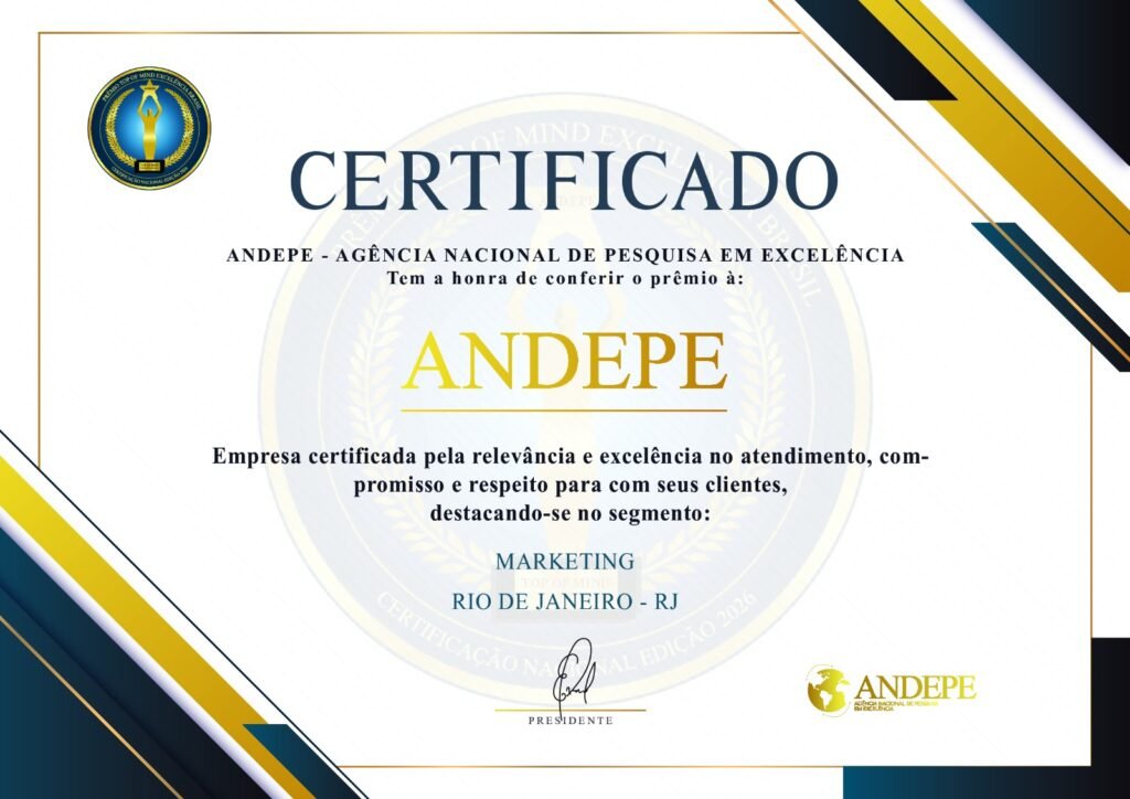 Além disso, você será homenageado em um evento nacional e receberá nosso troféu “ANDEPE” e uma placa de reconhecimento , que vai mostrar aos seus clientes que sua empresa é certificada em excelência, se destacando frente aos concorrentes.